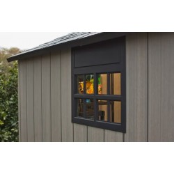 La structure à double paroi, le toit renforcé en acier et le plancher ultra-résistant assurent une excellente tenue face aux intempéries, sans nécessiter d’entretien. Sa double porte d’entrée, sa fenêtre de style victorien et sa lucarne apportent luminosité et praticité à l’intérieur. Un abri solide, fonctionnel et esthétique conçu pour durer.