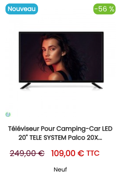 Retrouvez sur notre site de déstockage leader dans son domaine, notre arrivage de la télé pour camping-car et van à un prix CHOC de 109€ TTC.