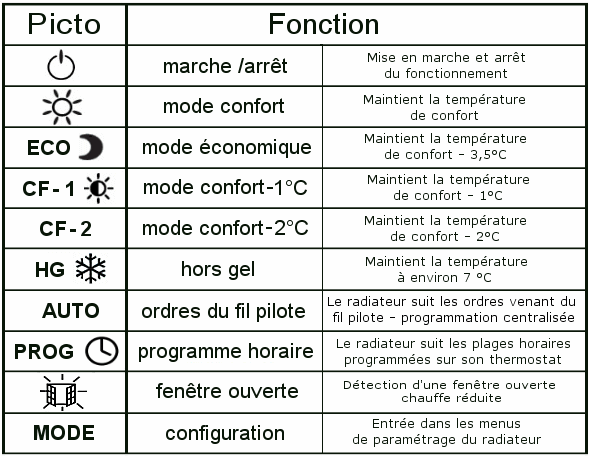 - On/Off : Simple comme bonjour, il sert à allumer et éteindre le radiateur.