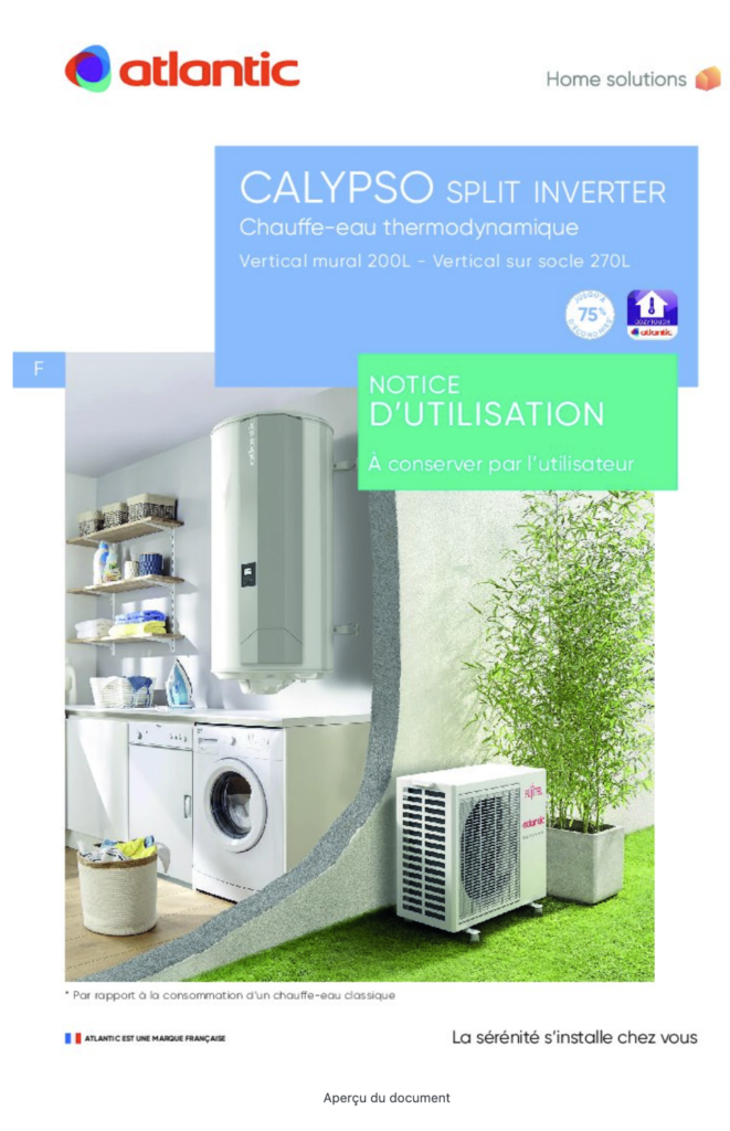 Notice chauffe-eau thermodynamique Atlantic Calypso 270L