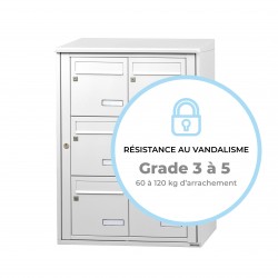 Chaque boîte est équipée d’un portillon embouti avec fente d’introduction munie d’une herse antivol, d’une serrure en zamak avec came renforcée et de deux clés. Les porte-étiquettes affleurants en polycarbonate sont inviolables.
