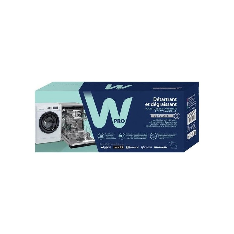 Le détartrant 3 en 1 WPRO nettoie, dégraisse et élimine efficacement le calcaire à l’intérieur des appareils électroménagers. Sa formule optimise les performances, prolonge la durée de vie des machines, améliore les résultats de lavage pour la vaisselle et le linge, tout en réduisant la consommation d’énergie et de produits lessiviels.