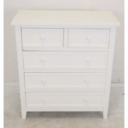 La commode Atmosphera Charme se distingue par ses cinq tiroirs spacieux et son style romantique. Idéale dans une chambre ou une entrée, elle associe un coloris blanc doux à des lignes élégamment travaillées, apportant une touche classique et chaleureuse à votre intérieur. Sa structure en MDF et ses pieds en bois de paulownia lui confèrent légèreté et stabilité.