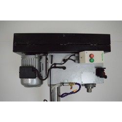 La colonne de 92 mm de diamètre, haute de 1800 mm, confère une grande stabilité à l’ensemble. Avec ses 250 kg, la perceuse reste stable sur sol. Un écran de protection, un capot de sûreté, un interrupteur de coupure en cas de manque de tension et un arrêt d’urgence garantissent la sécurité de l’opérateur.